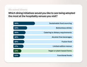 The same report found that diners wanted restaurants to focus a lot less on plant-based items, with only 13% flagging it as their top priority for 2024. Taking top spot for diners was sustainable food sourcing, with 34%.