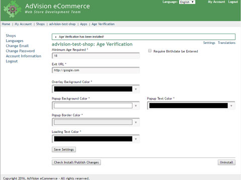 The Age Verification application is a pop-up panel that is presented to new visitors of your web store that asks them to verify their age or, be direct it away from the web store. It features self-administration on the following items.