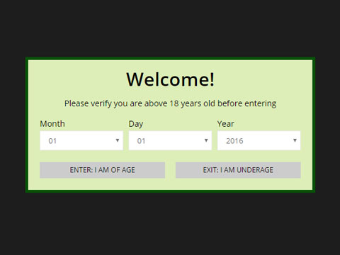 - Required Birthdate be Entered - if you want to make your users enter their birthdate in the age verification popup, check this box. When checked, the user will be presented with month, day and year select menus to enter their birthdate into. The birthdate entered will be compared to the Minimum Age Required setting to ensure what the user has entered meets the required age.