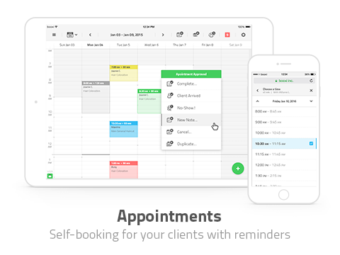 booxi lets you manage your appointments and clients from anywhere. You may use a tablet at work, a desktop at home and your smartphone on the go. You have a secured access to your centralized data from anywhere.