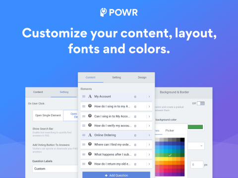 Follow the install instructions to add POWR FAQ to any page or product in your store. Then edit your FAQ through POWR.io. When you are finished, save your final plugin and copy the code. Finally, paste it on the site page where you want the plugin to appear.