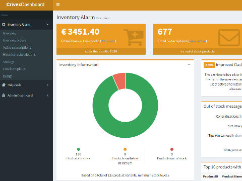 - Better insights: The Inventory Alarm Dashboard gives you valuable information about your stock and immediately discovers which products are most wanted.