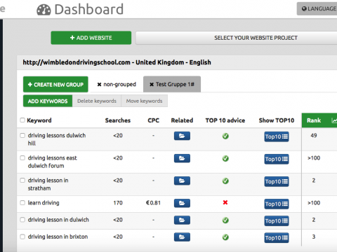 - KeywordMate automatically analyses search results per keyword and tells you if your webshop can reach the top ten using a specific keyword
