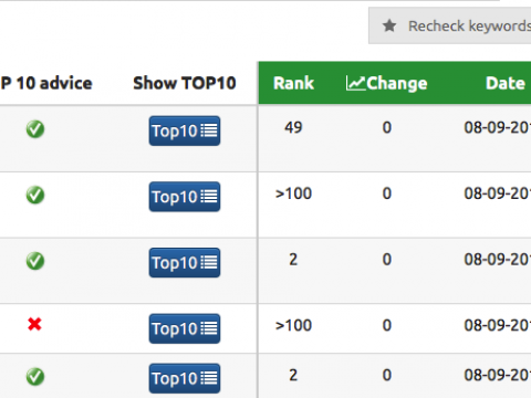 For your webshop there are about 500 to 1000 relevant keywords. KeywordMate does all your keyword research automatically. It shows the probability that a keyword will or will not make it to the top 10, based on the ‘onpage SEO optimisation’. KeywordMate does this very quickly for many keywords simultaneously. When advised ‘no’ this means that on short term you will not be able to achieve a top 10 position for that keyword and you will have to invest in linkbuilding. When advised ‘yes’ this means that you make a SEO page (landing page or blog) within your CMS, or an existing product- or category page, which will be SEO optimised on that specific keyword. Next you can follow your rise in keyword positions via a rankingscanner.