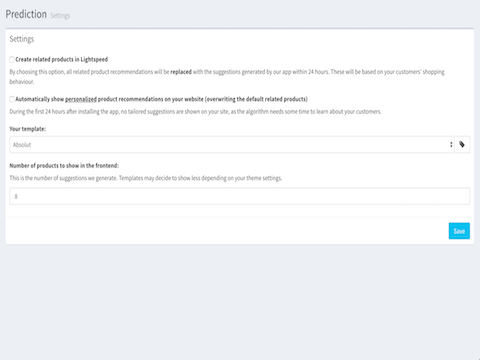 Product Prediction Genie has been tested with all themes currently available in the Lightspeed theme store. The results per theme may differ. If you have a custom theme, please contact us.
