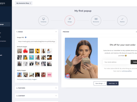 Choose from multiple templates for your popup, enter your own custom image or select one from our list, set up your color scheme and activate one of the many features that will turn your popup into a sales machine. The app is compatible with any theme, and with full support for all languages you can use the popups all across the globe.