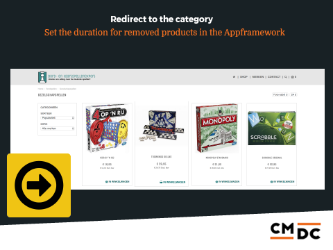Our app redirects customers to a category page, so you prevent customers from ending up on an empty page, and you positively influence the search engine score!