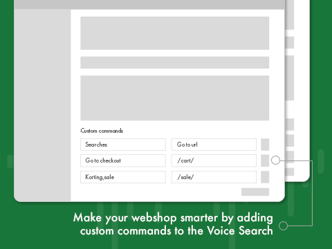 You search in a different way with your voice than when you type. For that reason we added two extra functionalities which makes the search function even smarter. Enter similar synonyms or words that will help the app understand what the user is trying to search for. It is also possible to add custom assignments. For example, add the custom search "Go to shopping cart" to go directly to the shopping cart, instead of searching the webshop for shopping carts.
