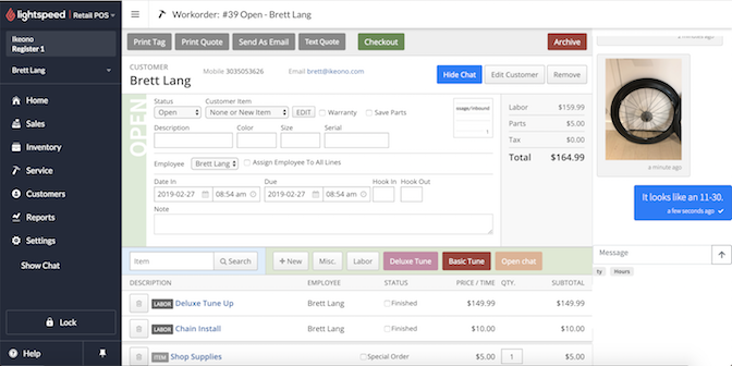 - Automated messaging based on Lightspeed work order status, and special orders.
