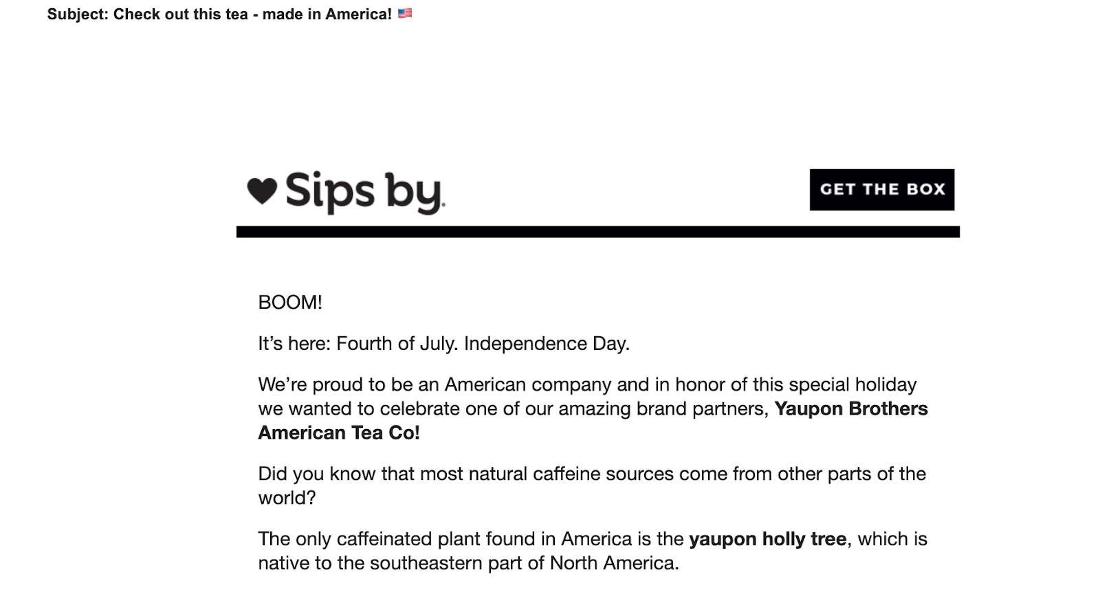 The subject line, Check out this tea – made in America 🇺🇸 is direct, to the point, and does a solid job of grabbing the attention of shoppers who prefer buying from US merchants.