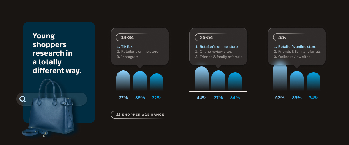 Younger shoppers have an entirely different shopping dynamic when compared to their older peers. The 18 to 34 cohort—Gen Z and Millennials on the cusp, or Zillennials—aren’t primarily consulting their friends and family offline or seeking out review sites like older shoppers.