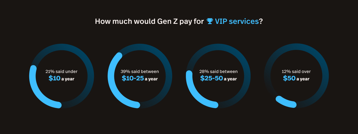In comparison, only 13% of shoppers above 55 and 29% of shoppers between 35 and 54 were interested in a paid VIP service, indicating this is where Gen Z differs the most from their older counterparts.