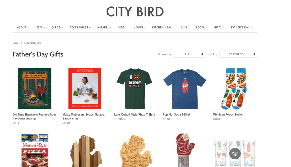 City Bird, a Detroit-based gift shop and Lightspeed customer since 2011, nails this approach with a curated Father’s Day collection that’s easy to browse and full of fun and endearing knick knacks.