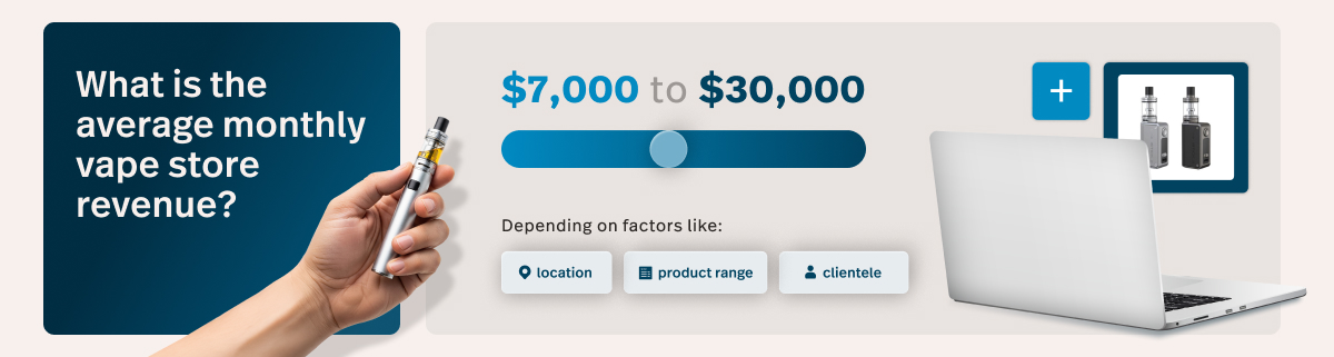 Average monthly revenue for a vape shop can vary significantly, typically ranging from $7,000 to $30,000, depending on factors like location, clientele, and product range.