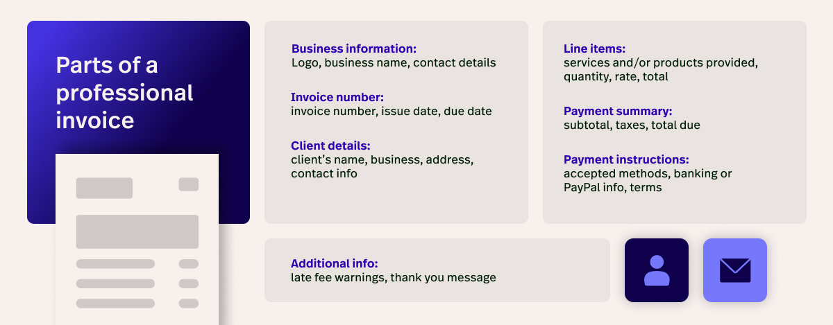 Whether you’re a freelancer or business owner, you can generate invoices using templates or software. Just ensure they include all required details: your business name, tax ID (if applicable), a breakdown of charges and payment terms.