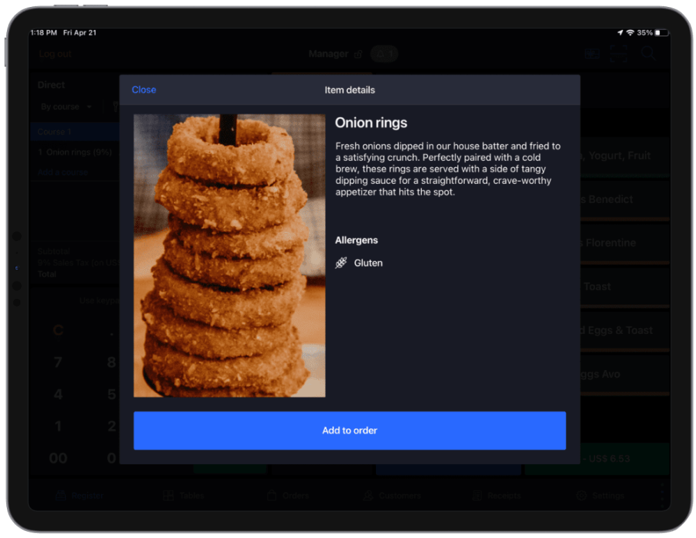 With something as simple as a mobile restaurant point of sale—invaluable for restaurants for a myriad of reasons—you can put allergen information in the hands of every front of house employee.