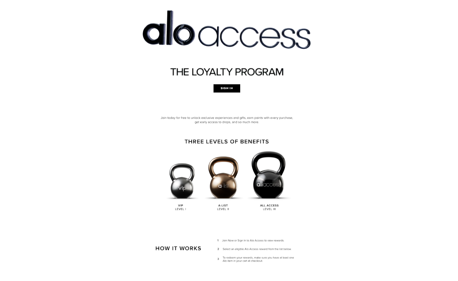 The fitness brand Alo, for example, has a loyalty program called Alo Access that’s packed with everything from gifts and rewards to members-only experiences.