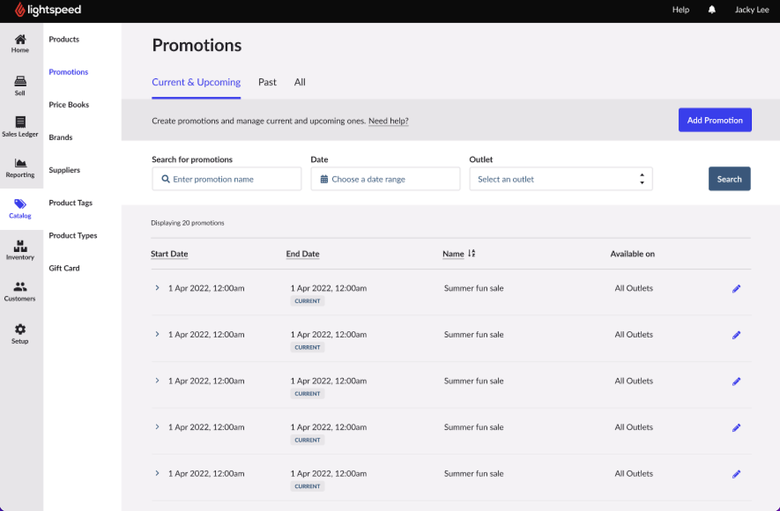 Lightspeed makes it easy for retailers to do just that. On the promo side, you can easily set up promotions such as percentage discounts or dollar amounts off. Running discounts is a breeze, thanks to the ability to schedule promos, select date ranges, and implement one-time or recurring offers.