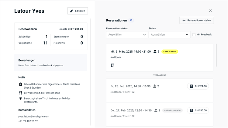- Gästedaten & CRM – foratable speichert automatisch Informationen zum Bestellverhalten und zu Vorlieben der Gäste. So können Restaurants ihre Gäste individuell betreuen und langfristige Kundenbindung aufbauen.