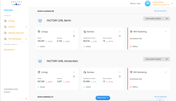 OBENAN offers all-in-one Local SEO Software for local businesses to complete their SEO duties on one single platform. The user-friendly dashboard helps restaurants, hotels, enterprise, and retail brands to get found online, increase their visibility in search engines and drive more foot traffic.