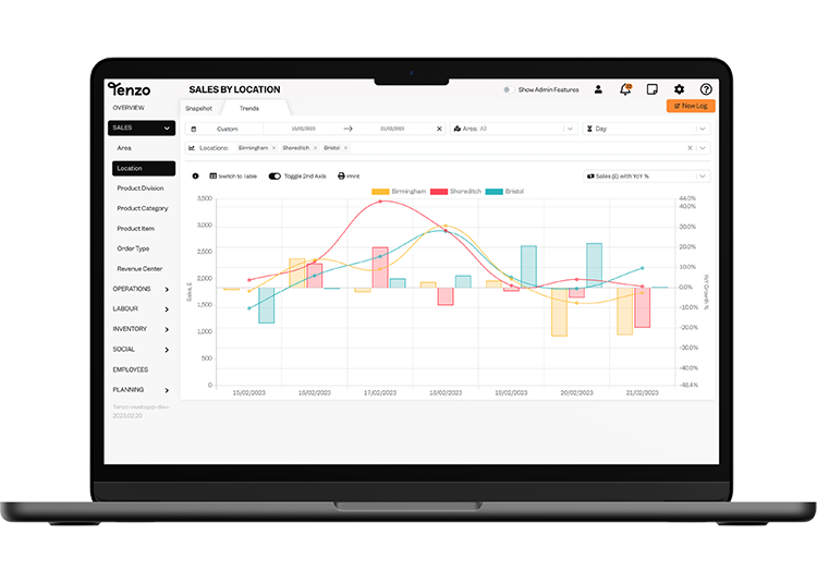 Tenzo bietet Lösungen an, die Verkaufs, Betriebs- und Sozialdaten zusammentragen und diese sehr benutzerfreundlich auf Handy und Desktop präsentieren. Die Daten werden in Echtzeit vom Lightspeed Back-Office bezogen. Diese Lösungen ermöglichen den Kunden, vorhersehbare Fehler zu verringern, das Sozialprofil zu verbessern und ihren Betrieb zu vergrössern.