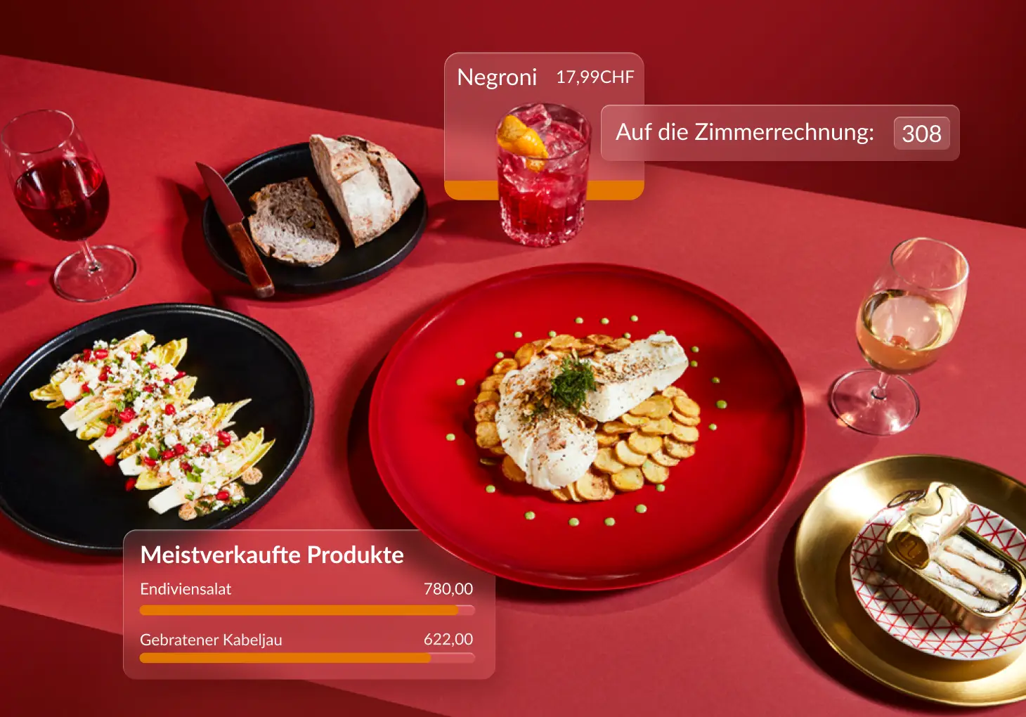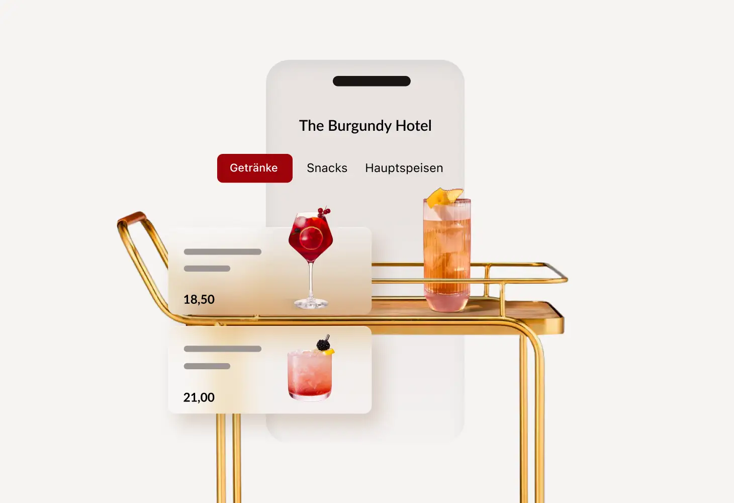 - Bieten Sie Ihren Gästen die Möglichkeit, Speisen und Getränke auf die Zimmerrechnung zu setzen. Verbinden Sie Ihre Systeme mit PMS-Integrationen.
