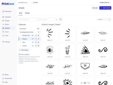 Printlane is a product personalization platform that allows you to receive customers designs of personalizable products automatically, saving you countless hours of time by turning orders into printed products faster.