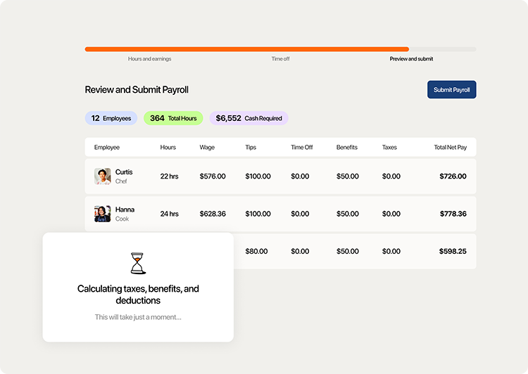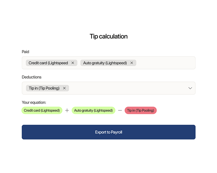 - Tip Calculation: Restaurants can automate how employee tips are calculated, synced, and paid out. With set-and-forget calculation rules and payroll integrations, restaurants can save time with an automated process that reduces admin work.