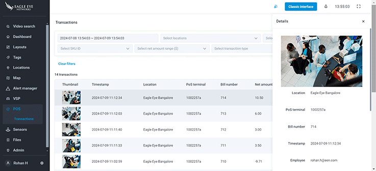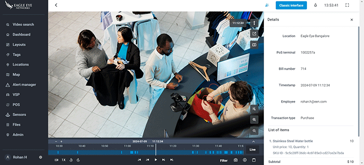- Effortlessly audit your POS transactions by reviewing video footage linked to each transaction in the Eagle Eye VMS