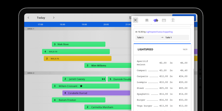 Formitable synchronizes your reservations with Lightspeed. Open a receipt in Lightspeed and automatically check-in your reservations in Formitable. As soon as you print the receipt, the table will be made available again (check-out) and the receipt is saved with the reservation. This way you can work easier real-time, are still available for online bookings the whole evening on your website and enrich your guest database with valuable data.