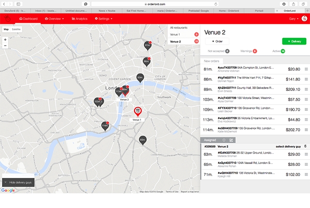 Orderlord is helping restaurants to get full control over their delivery service. The solution improves the reliability of delivery and boosts the customer experience while reducing costs thanks to a more efficient process. With order tracking and real time order updates for the whole team as well as customers you can boost your brand, reduce late deliveries and increase order frequency. The solution consists of 3 parts covering every step in the delivery process.