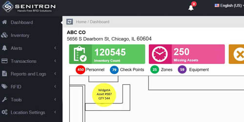 - Mapping Visualization – Senitron’s RFID solution is the only solution in the world that offers mapping technology with the handheld RFID scanner. Organizations can upload simple floorplan images into the Senitron software, and after a handheld RFID scan inventory, users can quickly see where items were located on the floorplan.