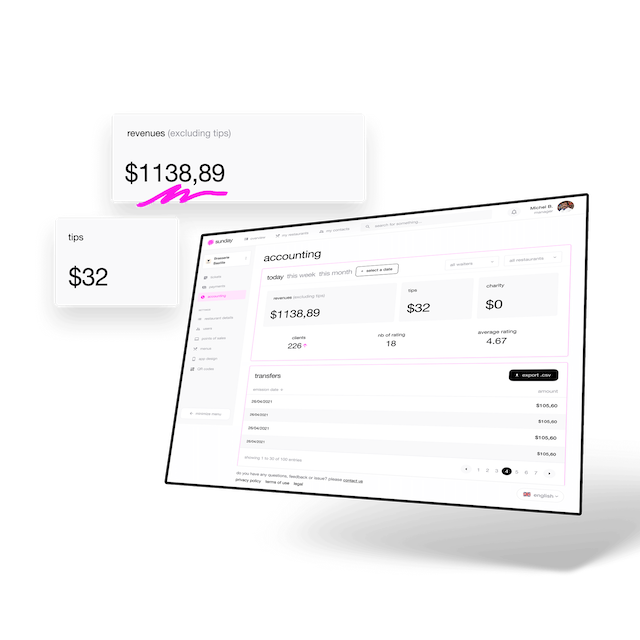 sunday simplifies the payment process for restaurant customers by letting them pay the bill in as little 10 seconds using QR codes. With sunday, restaurants are able to turn the tedious ~15 minutes it takes to pay into a quick and simple experience. Diners scan a QR code, split the bill, leave a tip, pay, and walk away: it’s as simple as that. sunday benefits all: the restaurant owner, their staff, and most importantly, their customers.
