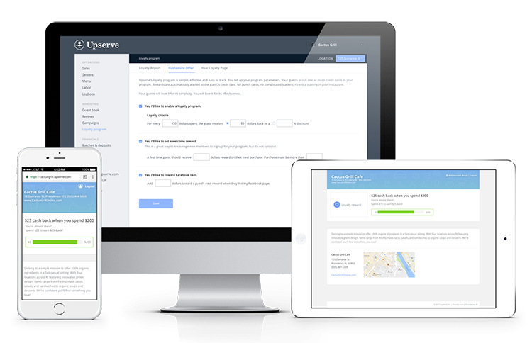 Integrated directly into Upserve Payments by Lightspeed customers on the Pro package, Upserve Loyalty by Lightspeed uses customer credit cards to enable reward credits to be applied back to the customer. No messing with discounts, taking money off the check or impacting potential server tips. Upserve Loyalty by Lightspeed is as simple as setting up in the Upserve HQ by Lightspeed portal and suggesting guests sign up!