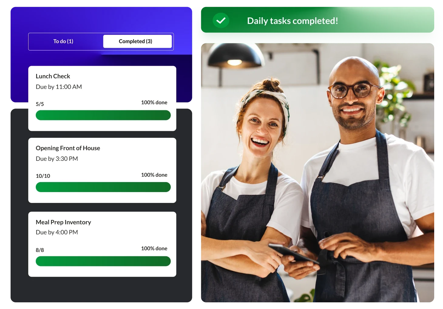 - Run smarter, more consistent operations with individual staff checklists, real-time insights, automatic notifications and task completion procedures