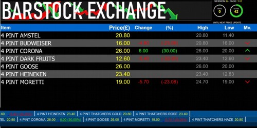 BarStock Exchange turns a bar into a stock market for an evening, with drink prices rising and falling every few minutes based on what is being sold. Live trading prices are displayed on screens around the bar and all prices are automatically updated on your Lightspeed POS system. It’s great interactive fun and a great way to increase sales.