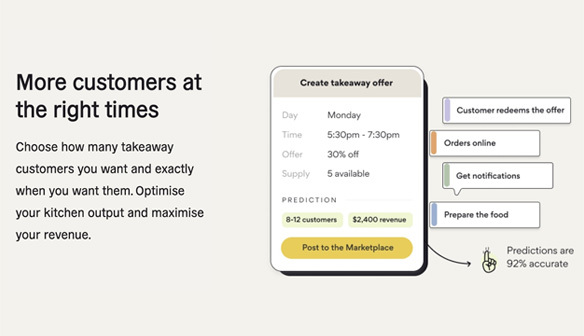 Restaurants can launch last-minute offers and see instant results, with more customers arriving at their venue. AI-driven prediction technology can help restaurants understand how to drive demand on different days and at different times.