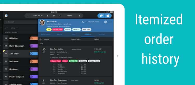 “Restaurant owners can follow VIPS and be alerted in real-time when these guests make reservations and as soon as they arrive at the venue for their meal. They can also track spend in real-time from home, watching a spend feed from their iPhone. “