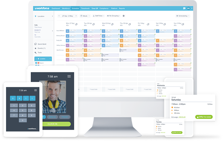 Generate optimised rosters at the click of a button using Workforce.com’s AI-driven scheduling engine, which automatically considers factors such as weather, events and local demand trends.