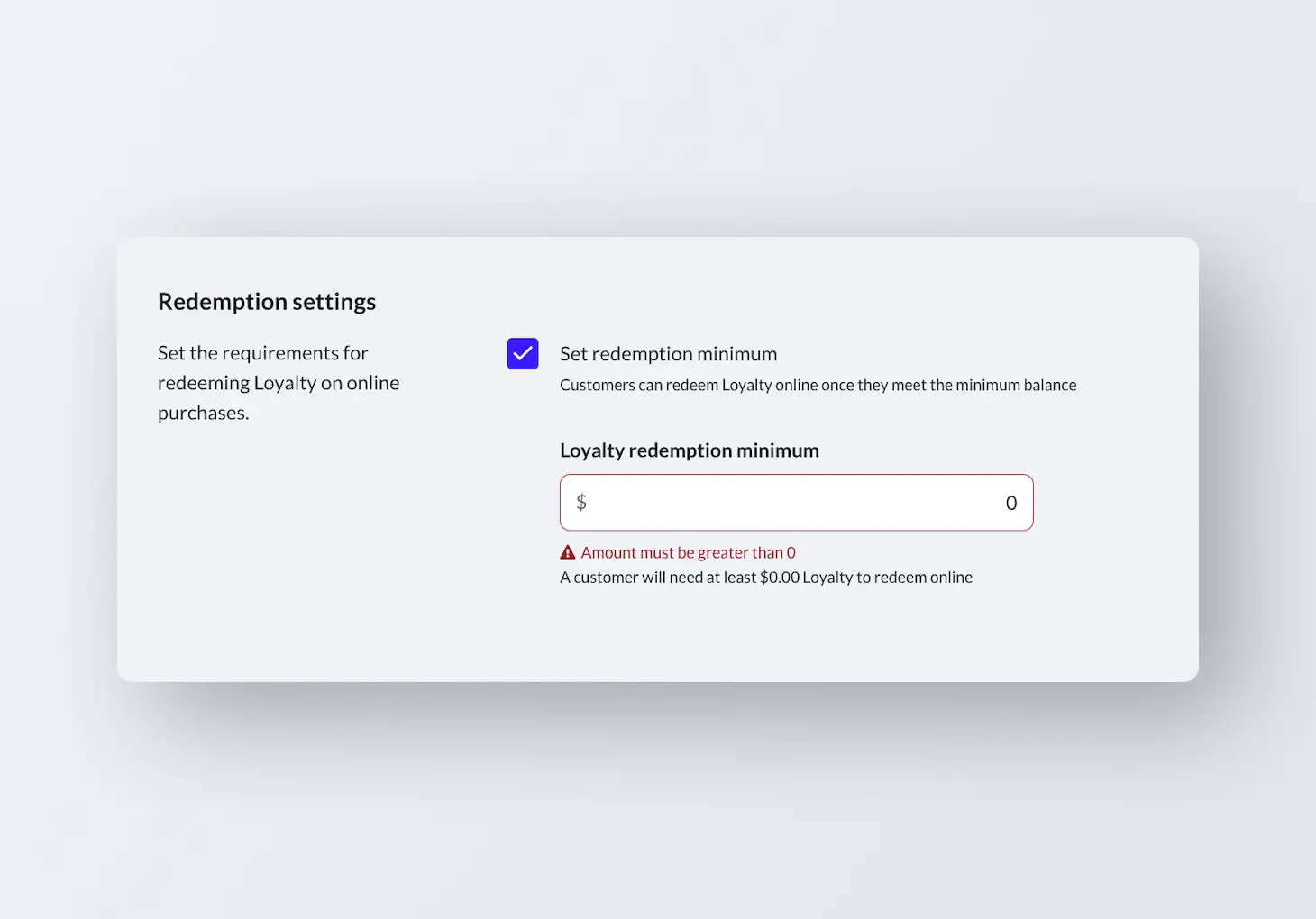 Now you can set a minimum loyalty balance required for redemption, giving you complete control over how your loyalty program operates and better management of your margins. Drive repeat purchases by motivating customers to return and build up their balance. These rules apply consistently across all channels, online and in-store, which eliminates manual workarounds and ensures a unified experience for both your staff and customers.