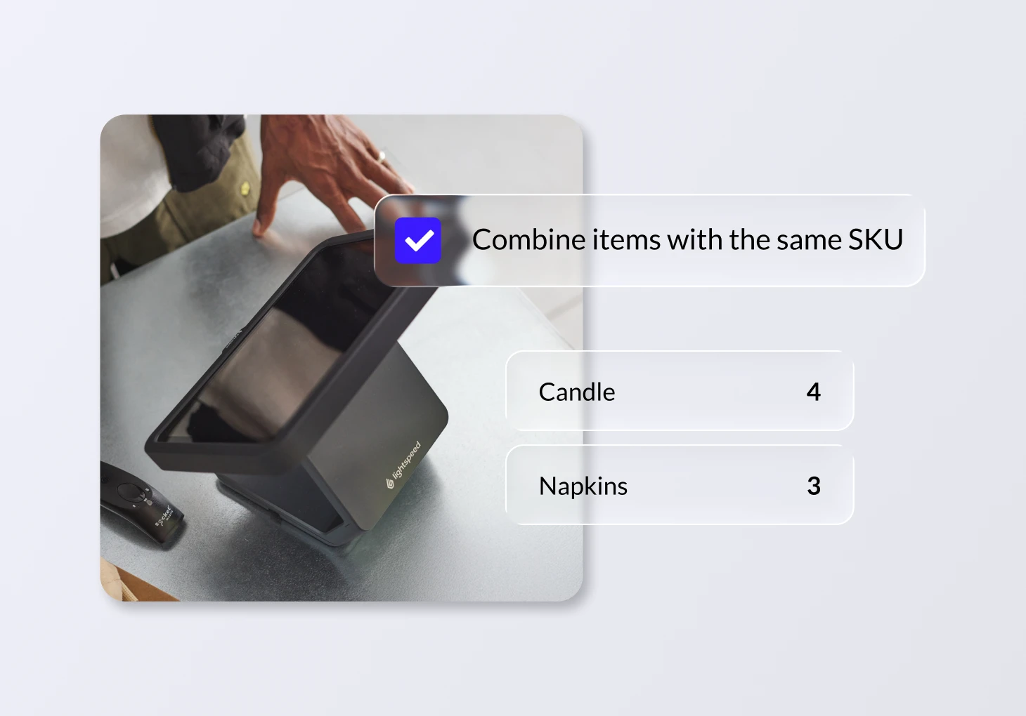 The sell screen will automatically combine multiple scans of the same item into a single line item, or manual adjustments to the quantity, speeding up checkout and shortening receipts. Simplify order review and reduce paper use, while still having the option to split items if needed.