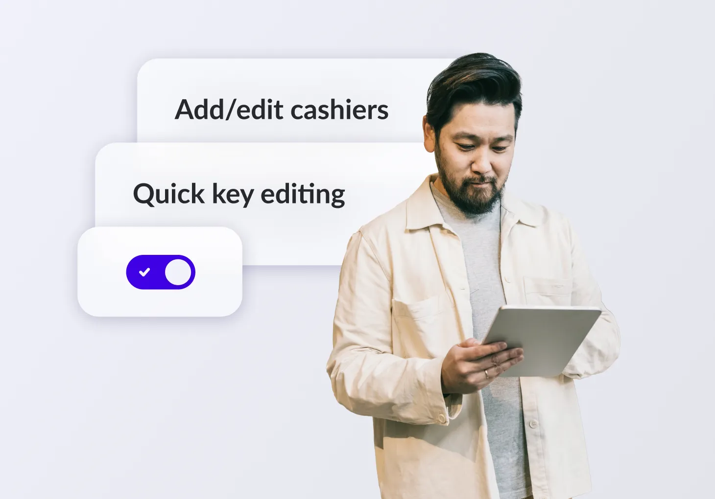 We’ve made manager permissions more flexible. You can now toggle, rather than be locked into, two key settings: add/edit cashiers, which is now combined into one permission, and quick key editing. Now you have greater control over what your managers can and can’t do.