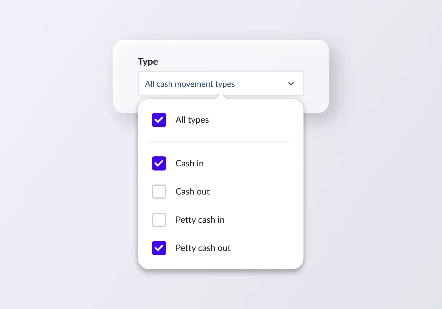View all your cash movements, like additions, removals and petty cash in a centralized exportable report. Save time, reduce reconciliation errors and get complete visibility into all your cash handling activities.